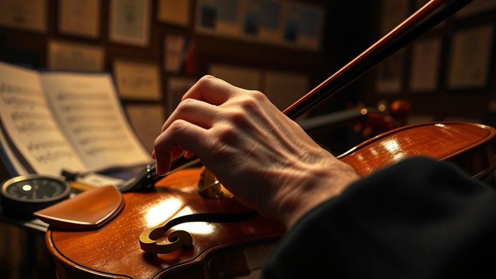You can sustain motivation during long practice sessions by setting clear, achievable goals that boost your intrinsic motivation. Break your practice into smaller, manageable tasks and celebrate progress along the way. Remind yourself of the purpose behind your effort and visualize success. Staying mindful of your growth keeps you engaged, making it easier to maintain focus and enthusiasm throughout extended periods of deliberate practice.