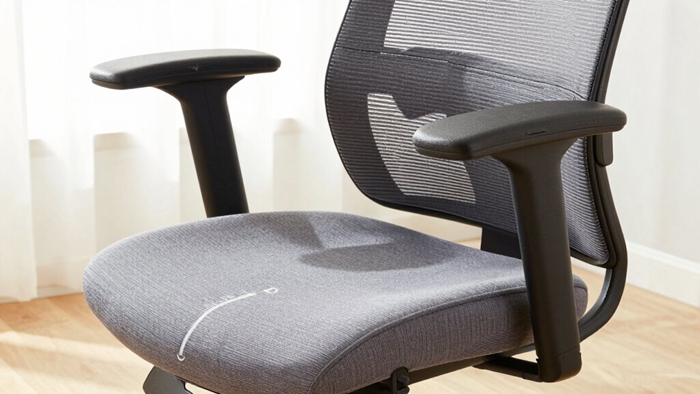 If your chair isn’t providing proper support, you’ll likely notice discomfort or pain after sitting for a while. One way to tell is through posture awareness—if you find yourself slouching or shifting frequently, your chair may not be fitting properly. Pay attention to cushion comfort; if the seat feels too hard, soft, or uneven, it could be causing strain. Additionally, if your lower back isn’t supported or you’re frequently adjusting your position, it’s a sign the lumbar support needs tweaking. Uncomfortable armrests or a seat depth that doesn’t align with your body can also contribute to discomfort. Ultimately, if you experience persistent aches or fatigue, your chair likely isn’t a good fit and needs adjustments to better support your body.