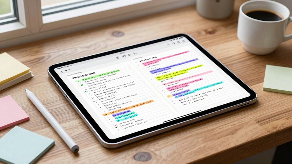 Using a consistent note template on your tablet truly transforms your workflow, saving you hours and boosting your memory. When you choose and customize the right template, you create a system that sticks with you long-term. Think of it like building a mental shortcut—your brain appreciates the organized structure, making recall easier. Embrace the process, troubleshoot when needed, and enjoy the efficiency that a well-crafted template brings to your note-taking.